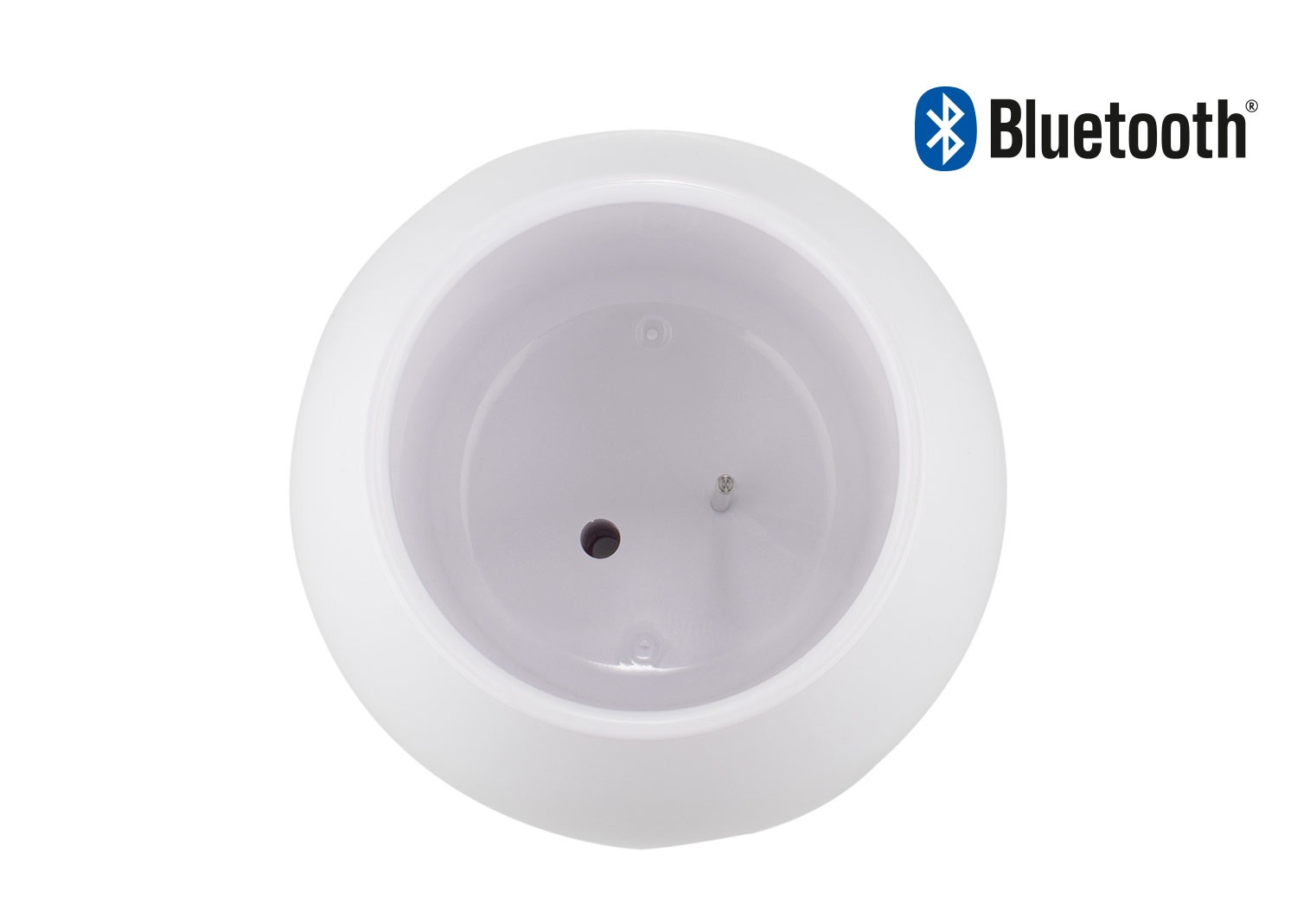 Altavoz Bluetooth con diseño multifuncional que incluye luz LED decorativa y maceta con sensores táctiles que permiten reproducir sonidos al tocar la planta; cuenta con puerto micro USB para carga, botón de control de iluminación con 7 colores disponibles, y diseño inferior con salida de agua para mantener la planta en buen estado. Ofrece conexión Bluetooth 5.0 con alcance de hasta 10 metros, altavoz de 5W, batería de 1,200 mAh con hasta 12 horas de reproducción, y controles básicos para reproducción, encendido/apagado y cambio de modo.