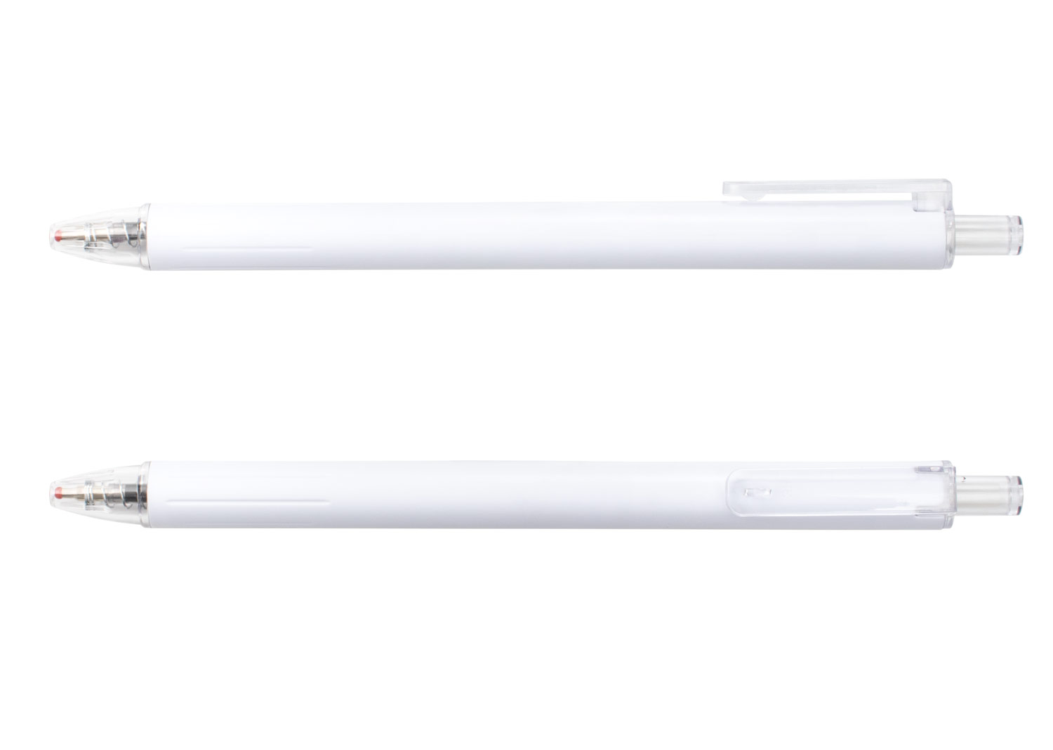 Bolígrafo retráctil con barril de color mate que aporta un acabado moderno y profesional. Cuenta con empujador, clip y punta en acabado transparente, que complementan su diseño funcional. Su tinta semi-gel ofrece una escritura suave y continua, ideal para el uso diario en entornos laborales o académicos.