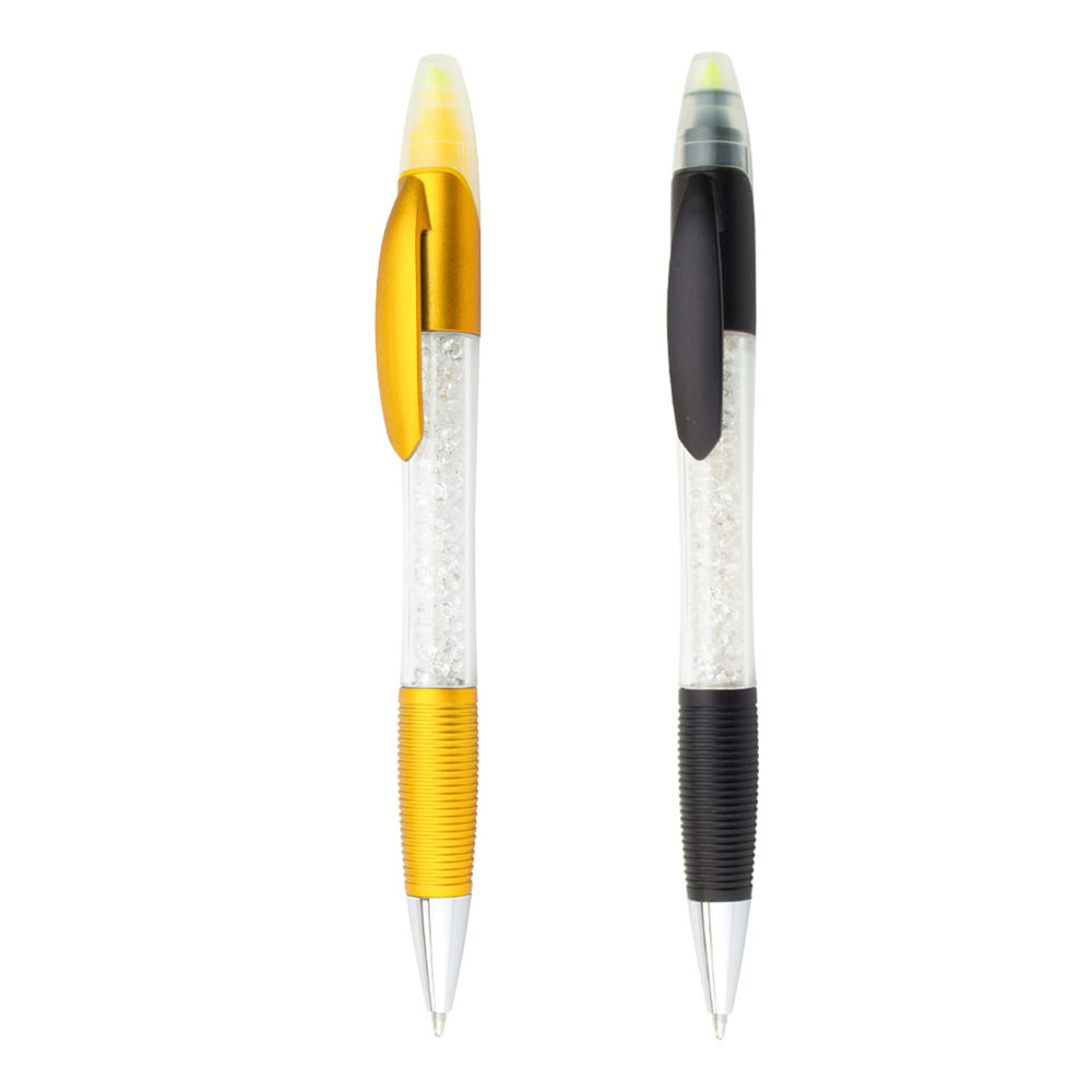 Bolígrafo plástico sistema twist y resaltador con tapa. Cristales en la parte central para dar diseño (Bolígrafo/Esfero)