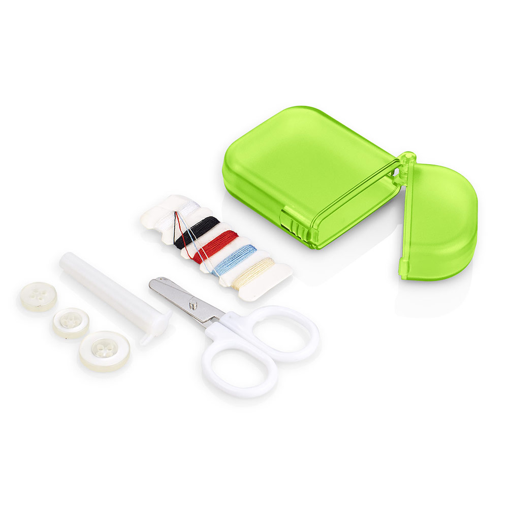 Minicosturero incluye hilos de colores, Estuche para guardar agujas, tijeras, tres botones.