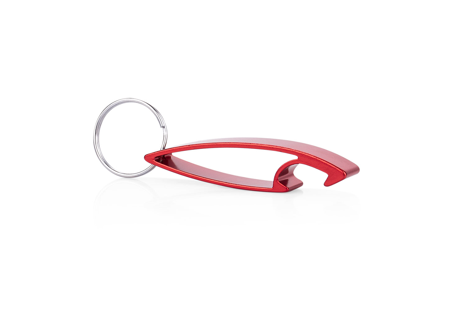 Llavero destapador en aluminio para abrir botellas y latas de gaseosa. Con argolla para usar como llavero.