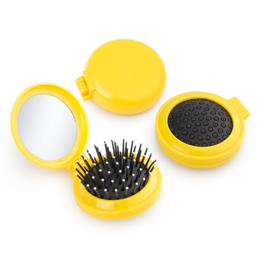 Espejo con cepillo redondo para cabello.